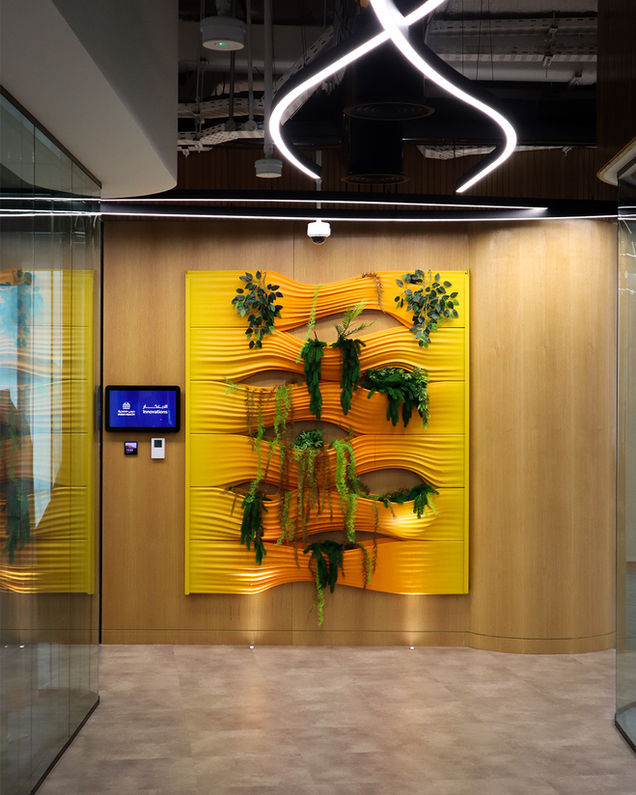A series of 3D-printed interior elements crafted for Dubai Health Innovation Platform.